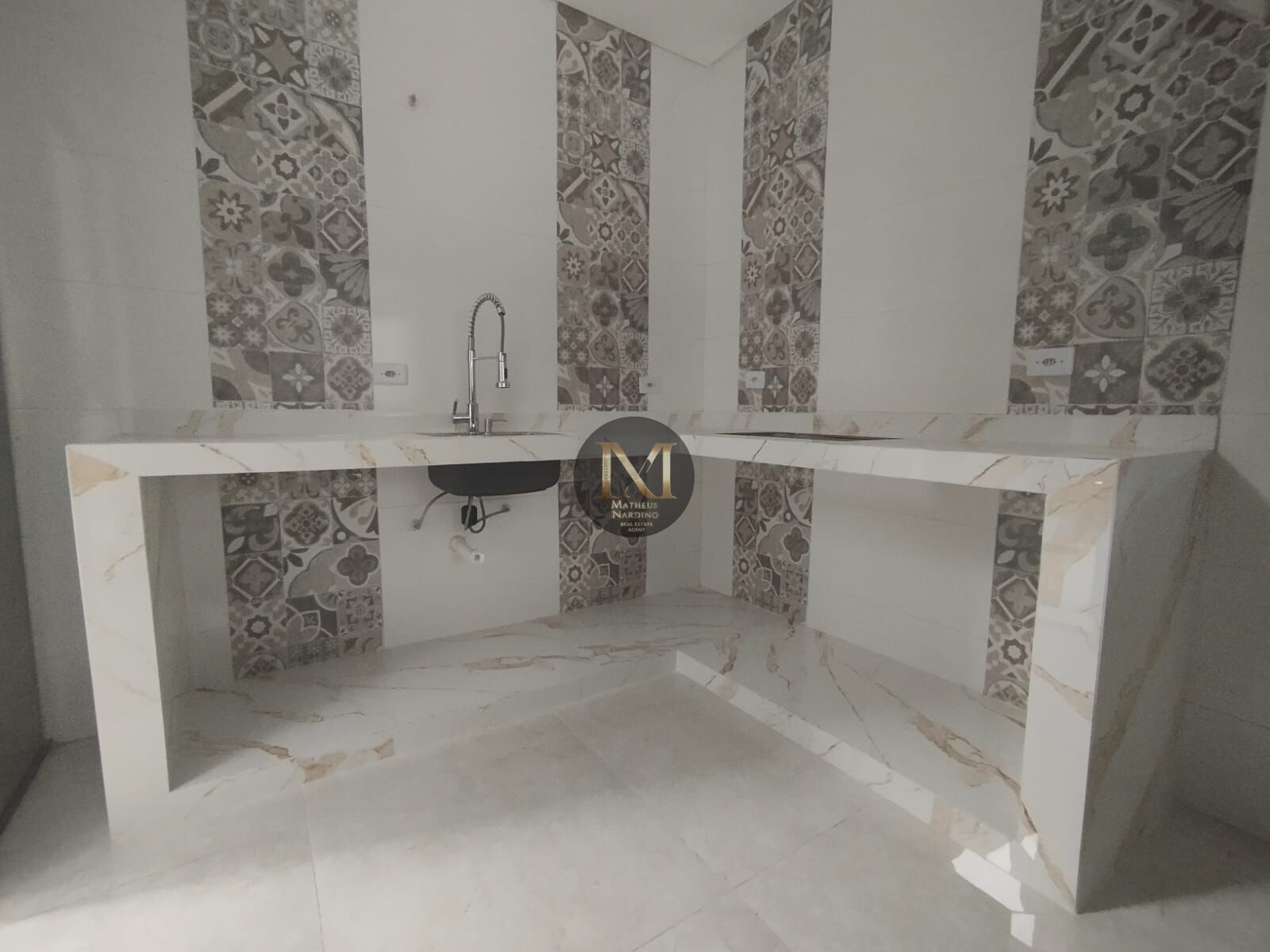 ✔️ Cozinha com revestimento moderno e água quente